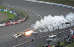 写真右は大分遠いですが何度も爆音をとどろかせてジワジワスタートラインに寄り、ドゴーンと走っていきましたよ。こんな車(?)を400mをいかに速く走るかと言うためだけに作ってます。