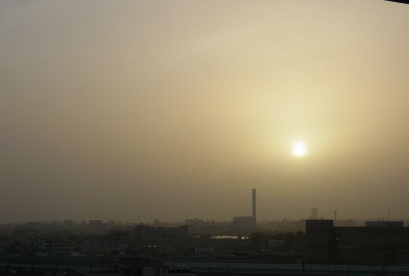 写真はそれには関係なく黄砂の凄かった日と普通の日の夕方の色でございます。