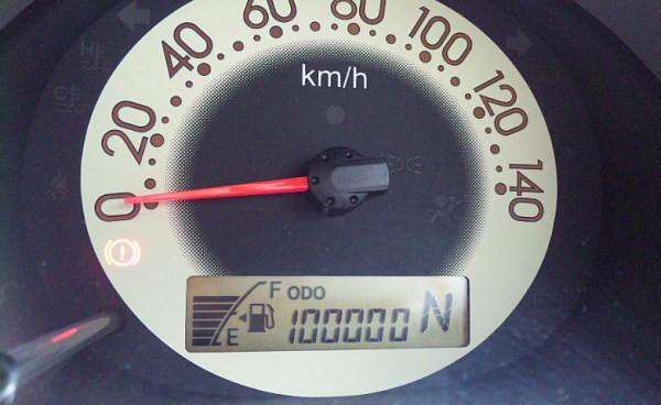 そしてもう一つ変わったのが、ウチの車。10万キロこの夏車検だし、写真の通り、昨秋には10万キロを超えたので買換です。