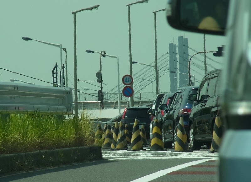 真ん中の照明灯が邪魔ではありますが、大中小の3つヨチヨチ(ちうても確か時速40キロぐらい)渡っていくのがオカシイです。でもって、ここが上り坂というのもこういう風に見ないと気づかないもんですね。この場所を間近に見ることも、普通はないですし。