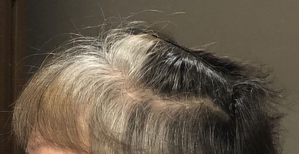 4ヶ月ほど白髪染めをやめた現在の感じ。少しかき分けてみました。