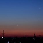 上の写真は駅前ロータリーの街路樹で眠っていたムクドリが夜明け前に一斉に出掛けるところです。