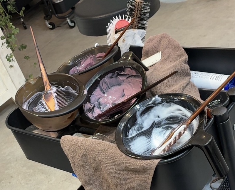 では色を作ってきますねと出てきたカラー材のボウル、4つ!!(写真は塗った後)